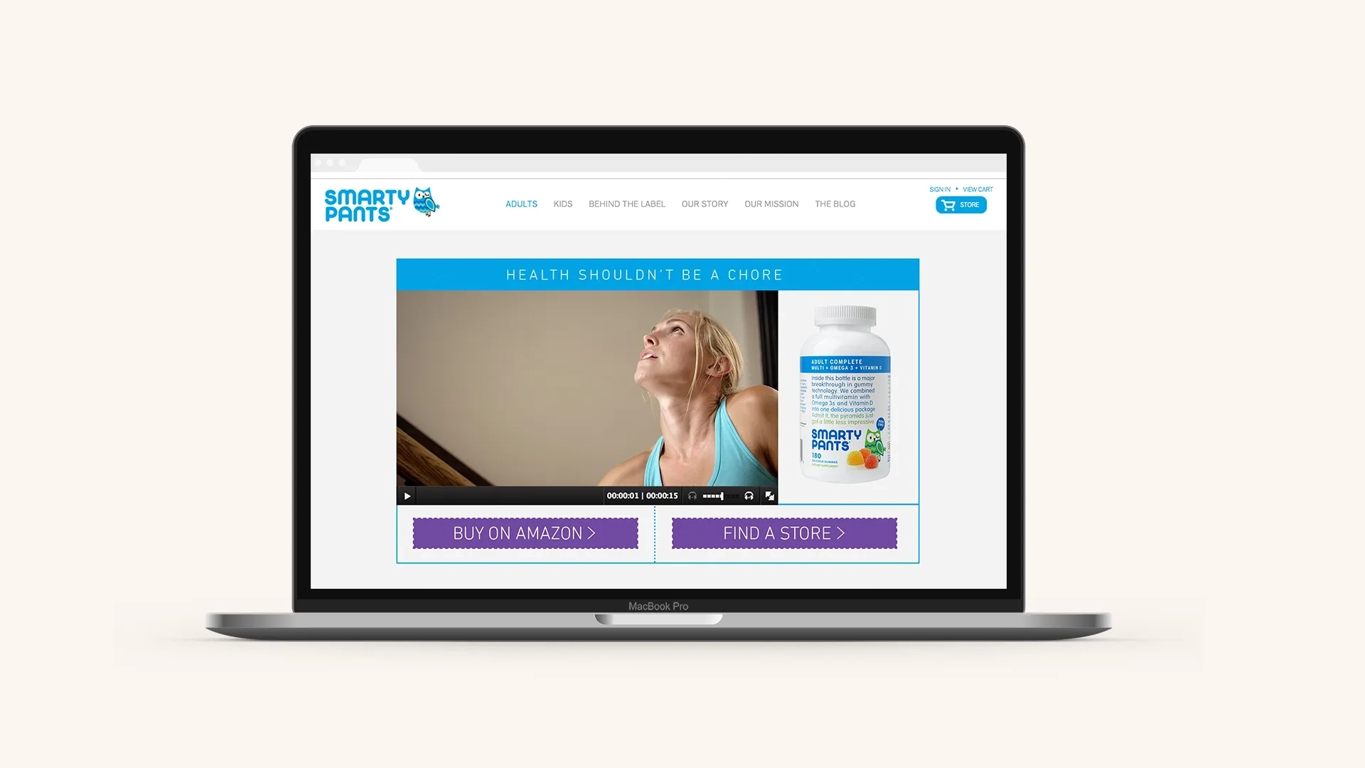 Taking your daily vitamins shouldn’t feel like a chore. With SmartyPants, it doesn’t. Our challenge was to shift gummy vitamins from “just for kids” to a daily health ritual for adults - one that’s fun, flavorful, and packed with the nutrients modern diets often miss. We built a lifestyle brand rooted in joy and wellness, supported by strategic in-store and digital activations to boost retail discoverability. By making the brand as easy to find as it is to enjoy, we helped SmartyPants grow from an emerging disruptor to a shelf staple - and eventually a Unilever acquisition.